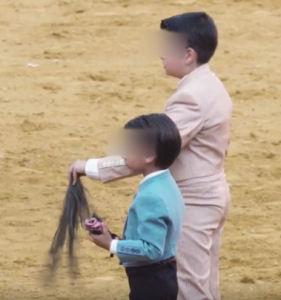 Video taktiež obsahuje zábery, kde sú býkove uši a chvost odrezané a podávané deťom. „Uši alebo chvost zvierat sú ponúkané matadorom, ak ich vystúpenie bolo dobré. Ako vidíte na videu, jedno zo zvierat je stále nažive, keď mu ucho odrezali a druhé sa takisto stále hýbalo,“ vysvetľuje tradíciu a dianie vo videu Marta Esteban.