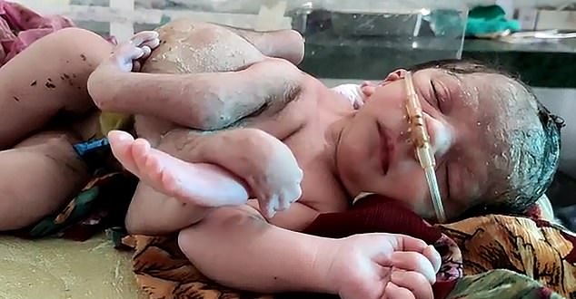 Podľa New York Post porodila 24-ročná žena z indického mesta Tonke dievčatko so štyrmi nohami a tromi rukami.