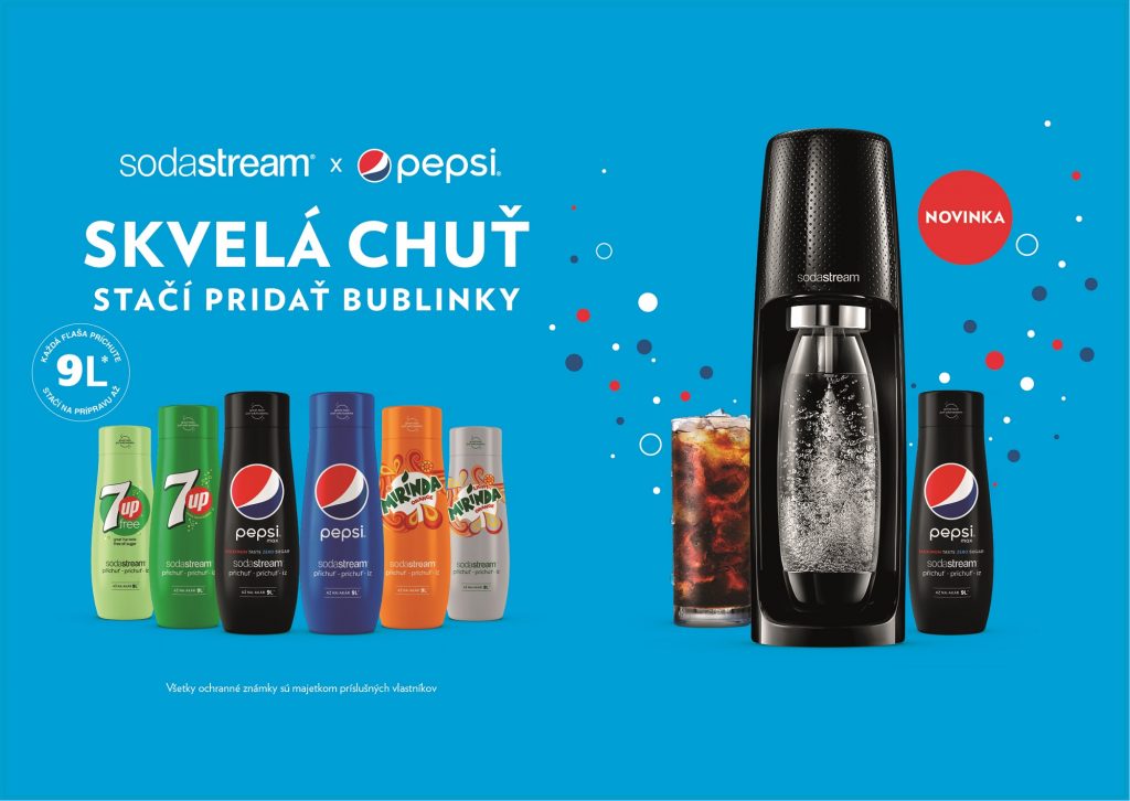 Bratislava, 24. mája 2021 – S novými príchuťami od Pepsi prináša SodaStream do domácností chuť ikonických nápojov v praktickom balení. Perlivé, svieže a intenzívne – kultové nápoje od Pepsi si môžete odteraz urobiť za pár sekúnd. Stačí jednoducho nasýtiť ľadovo vychladenú vodu z kohútika, pridať niektorú z populárnych príchutí od Pepsi a perlivý nápoj je na svete – bez vláčenia fliaš. Sortiment príchutí Pepsi bude tvoriť klasická Pepsi, Pepsi Max, 7UP, 7UP Free, Mirinda a Mirinda Light a na Slovensku sa začnú predávať od 1. júna.