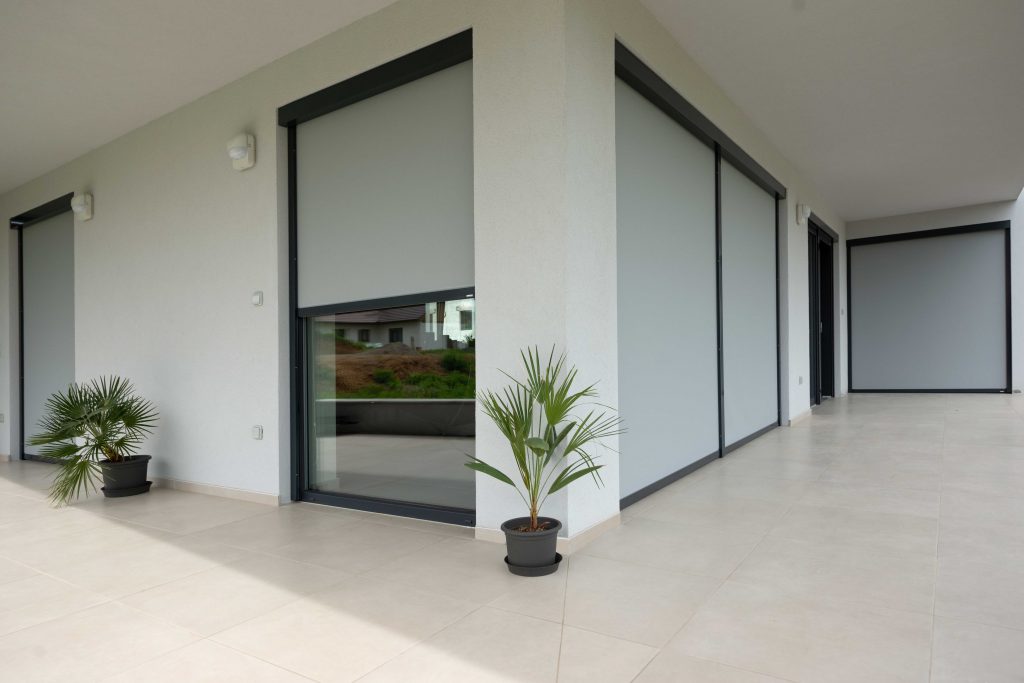 TIP: Moderná screenová clona Unirol 100 Z má látku vedenú v zipse a odolá tak vetru o rýchlosti až 90 km/h. Látka a motor sú schované v hranatom boxe a clona zatieni plochu až 9 m2.