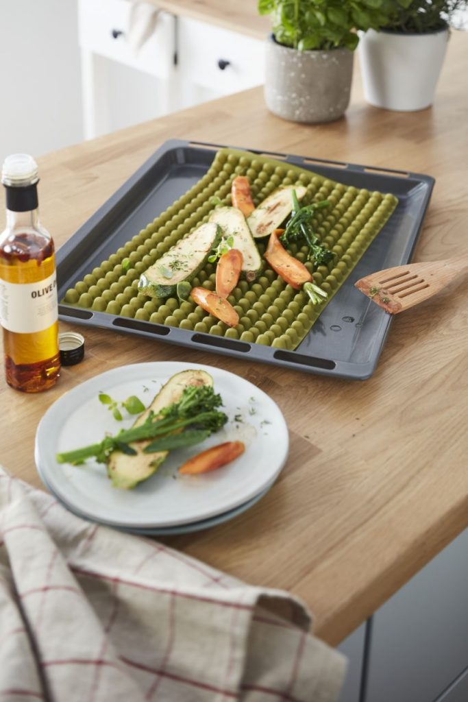 Opakovane použiteľná silikónová podložka z Tchibo umožňuje piecť bez tuku. Foto: Tchibo